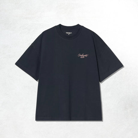 Carhartt WIP S/S Signature Script T-Shirt: Deep Night / Glassy Pink